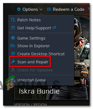 Fortunately, Blizzard provides a built-in tool that’s capable of resolving the vast majority of corrupted game files automatically. It’s built straight into the Blizzard Battle.net app and some users have confirmed that it allowed them to fix the Error #134 (0x85100086).