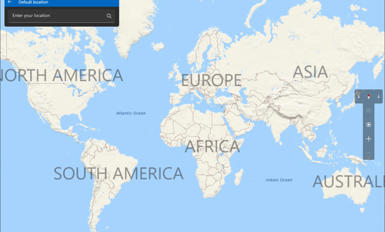 Entering Default Location in Windows Maps - This location will be used as the default when Windows cannot detect your real location.
