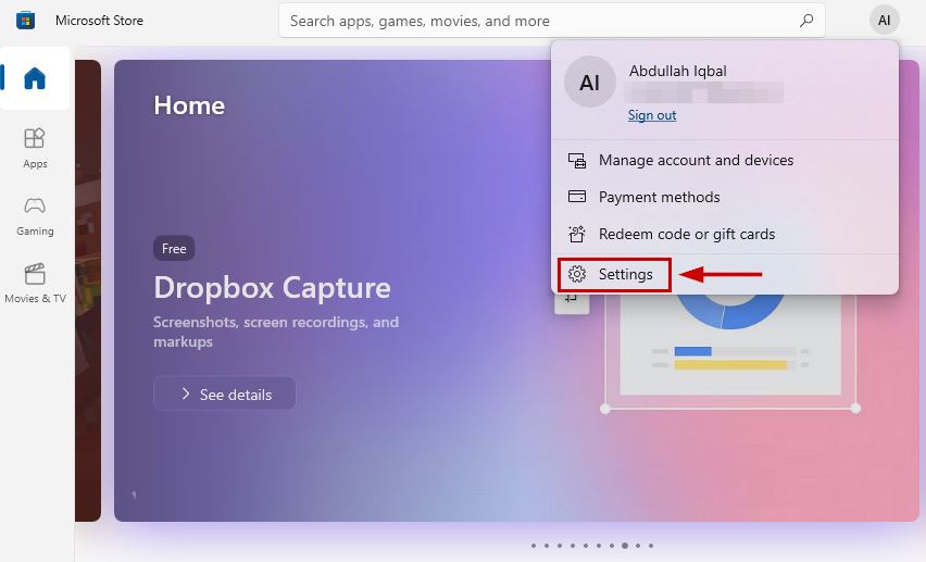 - Open the Microsoft Store and click on your profile picture on the top right.