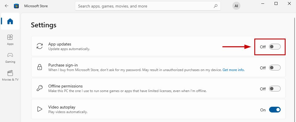 The AppXSVC sub-service of wsappx manages the installation, uninstallation, and updating of apps. While the apps are being updated, this service gets to work and uses a significant amount of RAM. Therefore, disabling the auto-updates will prevent this service from starting.