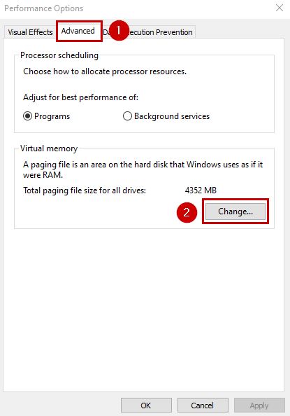 - Now go to the Advanced tab and click on Change under the Virtual Memory section.