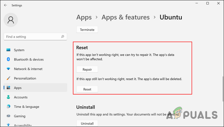 - Corrupt Linux app installation – the installation file of the Linux app (Ubuntu) might be corrupt or faulty, preventing you from using WSL. In this case, you can either repair the application or reinstall it to resolve the issue.