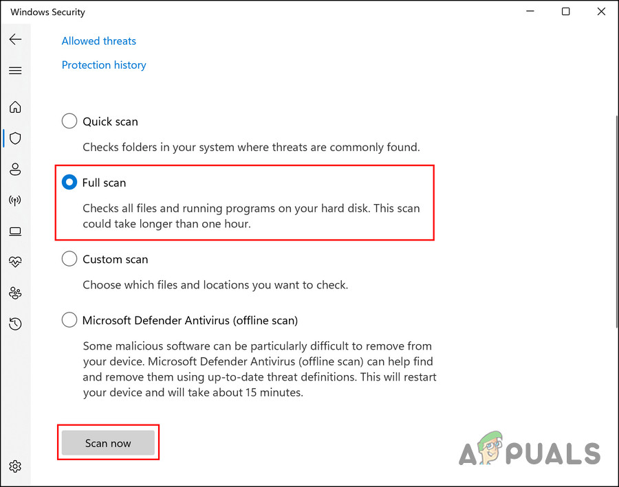 Your system may be dealing with a virus or malware that is causing certain components and features to act up. In such a situation, Windows Defender’s malware scan is the most effective solution.