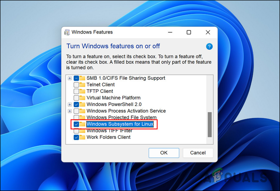 - WSL is disabled – the WSL feature should be enabled in the Windows features dialog for you to use it. There are times when an update disables this feature automatically, causing the issue at hand to occur.