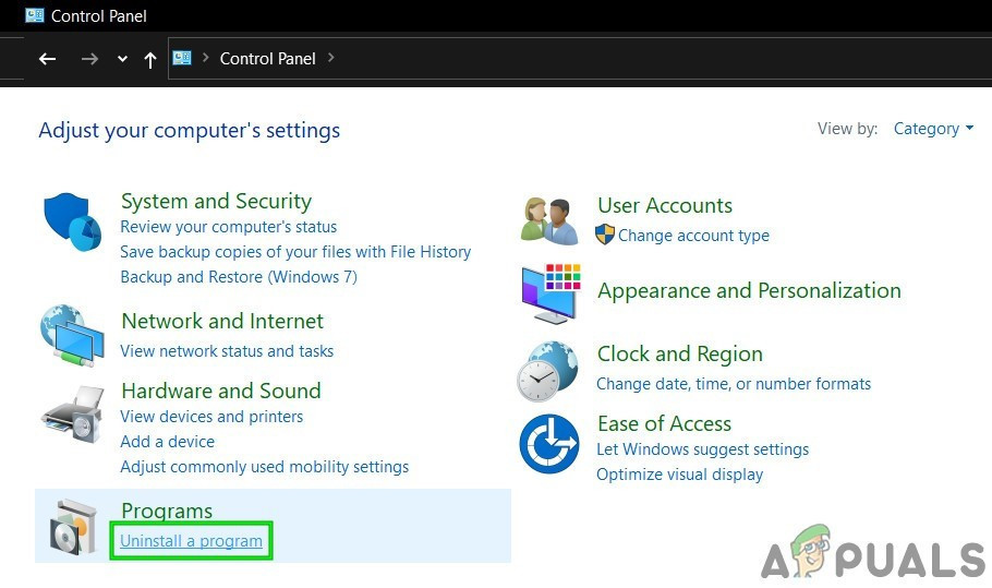 Open Control Panel - Now click on Uninstall a Program.