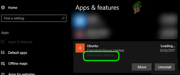 Open Apps in Windows Settings - Now, find and click on your Linux Distribution Application, e.g., if you are using Ubuntu, click on Ubuntu. Then click on Advanced Options.