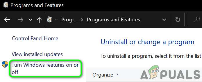 Click Uninstall a Program in Control Panel - Then, in the left pane of the window, click on Turn Windows Feature on or off.