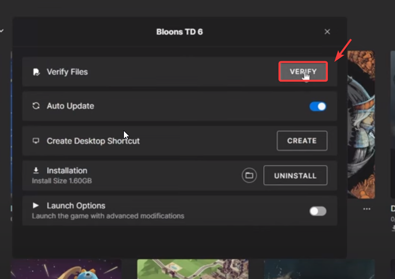 - Then, click Verify to start validating the game files.
