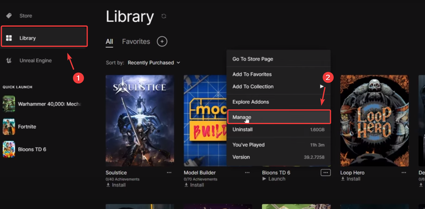 - Open the Epic Games Store launcher on your PC and navigate to Library.