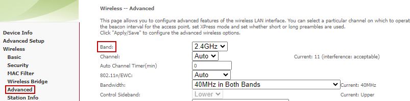 - Change the band to 2.4 GHz if it was on 5 GHz.