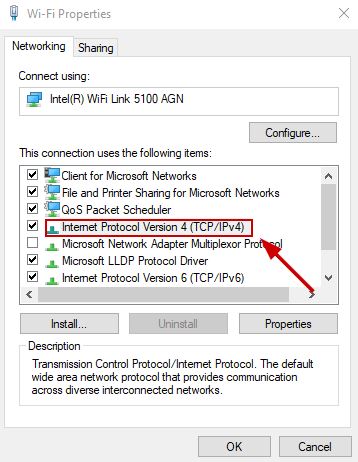 - Select the Internet Protocol Version 4 (TCP/IPv4) box and double-click on it.