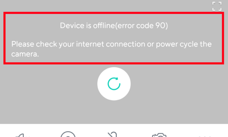 - Device is offline (error code 90). Please check your internet connection or power cycle the camera.