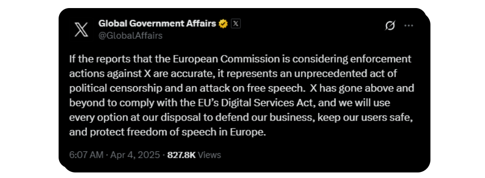 While the news wasn’t officiated when it broke, X’s Global Government Affairs account stated that the reports are accurate and that the platform will try and use every option to “protect freedom of speech in Europe.“