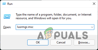- In the Run dialog box, type in lusrmgr.msc and then hit the Enter key.