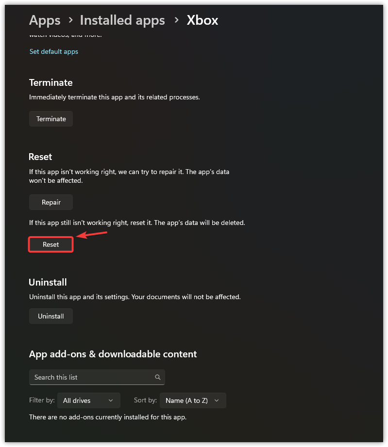 Resetting the Xbox app and Gaming Services clears out corrupted settings, temporary files, and stuck background tasks that can block Game Pass installations. Use Repair first; if the error persists, choose Reset, which wipes cached data but keeps games and saves.