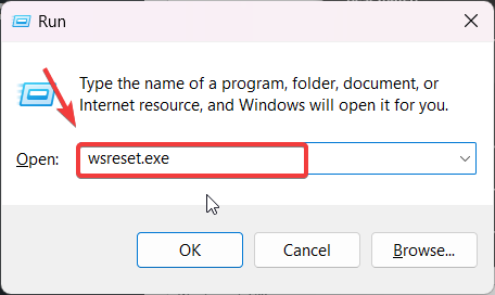 - Press Win + R, type wsreset.exe, and click OK. A blank Command Prompt window will appear for a few seconds and then the Store will reopen after the cache is cleared.