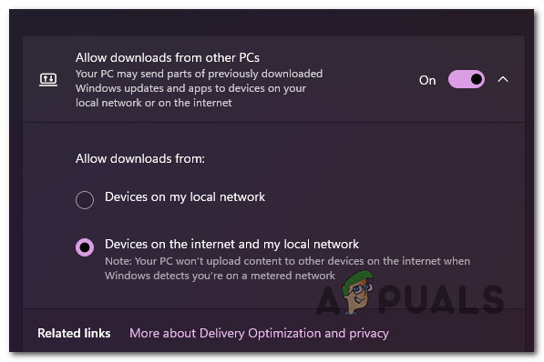 As it turns out, one lesser-known cause that will surely trigger this behavior on Windows 10 and Windows 11 is a scenario in which the Delivery Optimization feature is actually turned off.