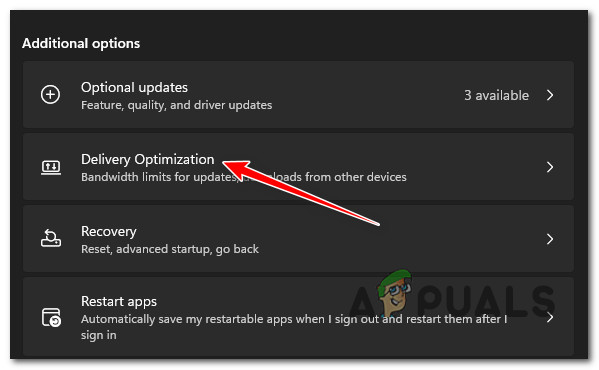 Access the Advanced Options menu - Once you’re inside the Advanced Options menu, scroll down to Additional Options and click on Delivery Optimization.