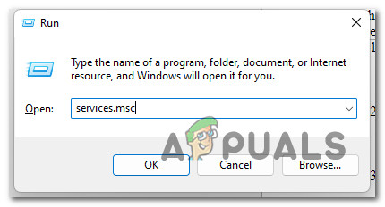 - Press Windows key + R to open up the Services screen. Next, type ‘services.msc’ inside the text box and press Ctrl + Shift + Enter to open up the Services screen with admin access.