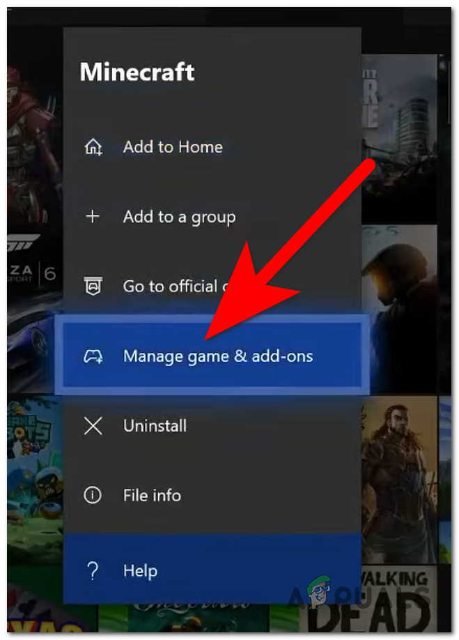 Pressing the Menu button to expand the options list - Once you have done that, scroll down to select the Manage game & add-ons section.