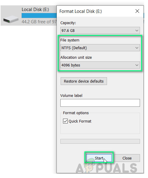 - Click Start. This process takes time, so wait for it to format properly. This may fix your problem.