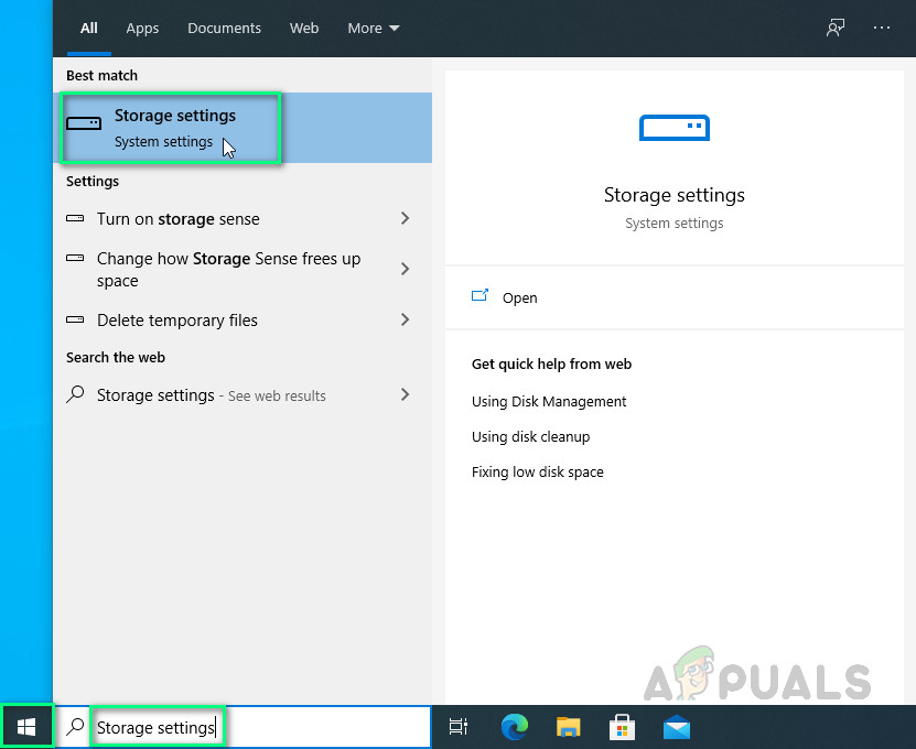 Searching Storage Settings - Now click on Change where new content is saved under More Storage Options.