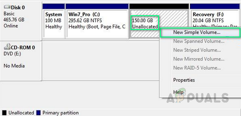 Shrinking C Drive Volume - Right-click on the Unallocated Space at the bottom right and select New Simple Volume.