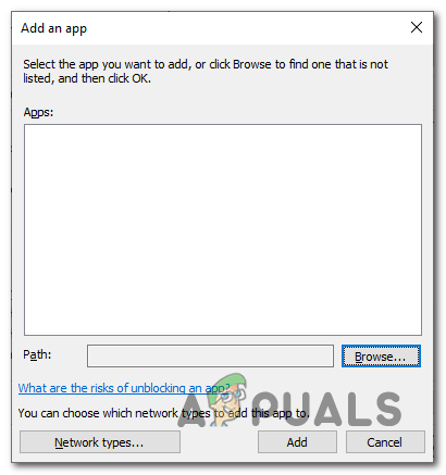 Adding Xbox insider hub to the firewall application list - Click on the Browse button visit Locate this path