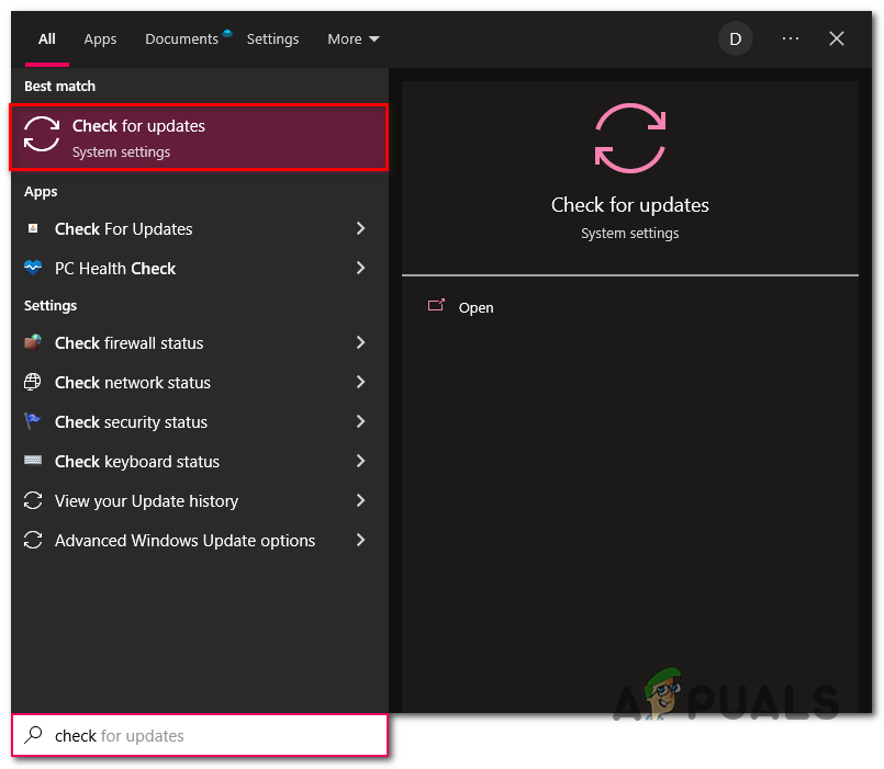 - In the search bar, type Check for updates.