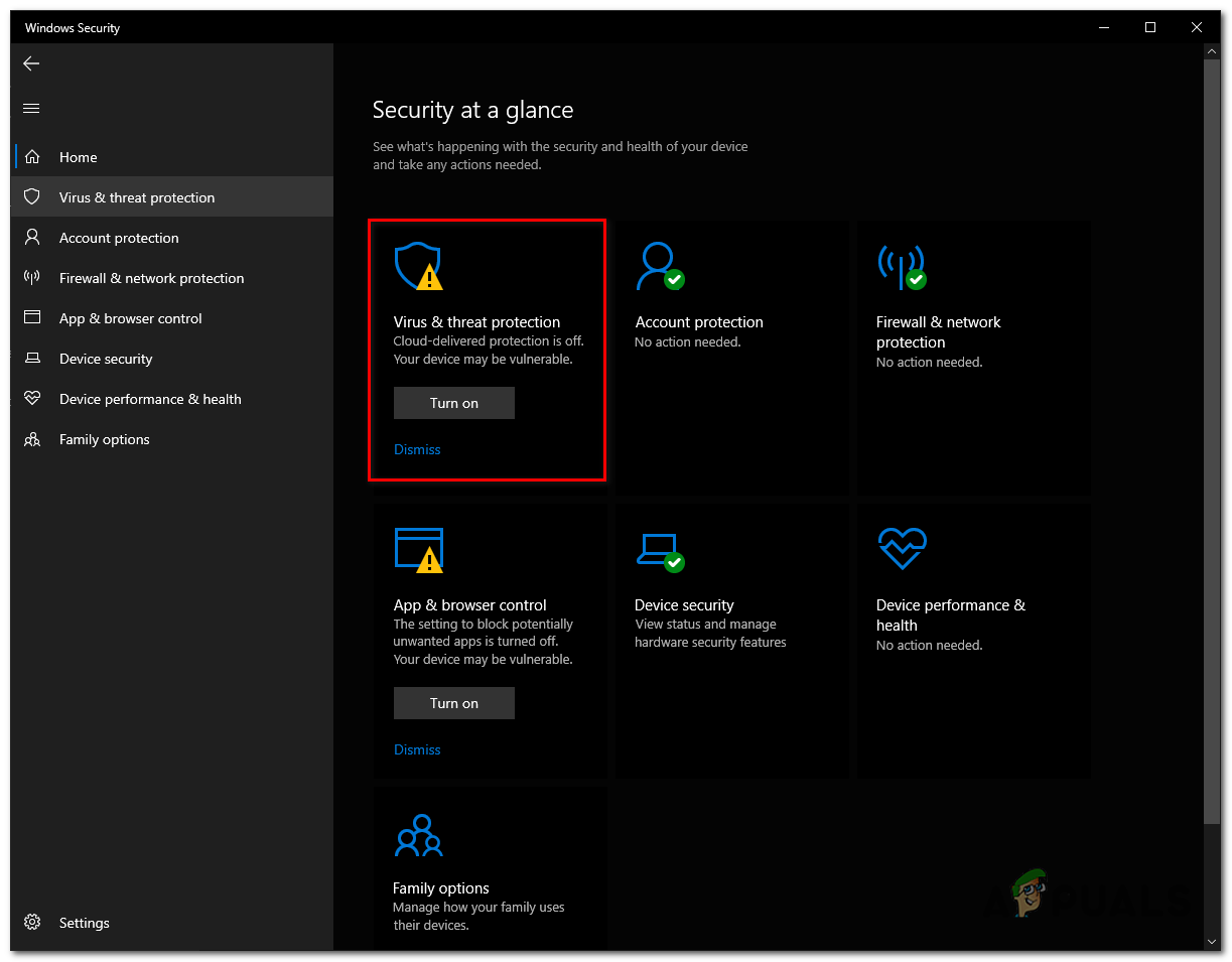 Disabling Windows Defender - Click on the Virus and Threat Protection box in the image below.