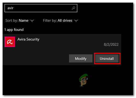 Uninstalling antivirus - In the search box, search for your antivirus, i.e, Avira
