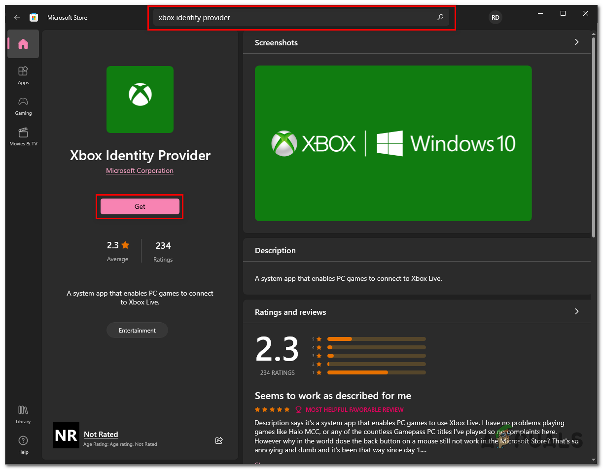 - Open Microsoft store, and in the search bar, type Xbox identity provider.