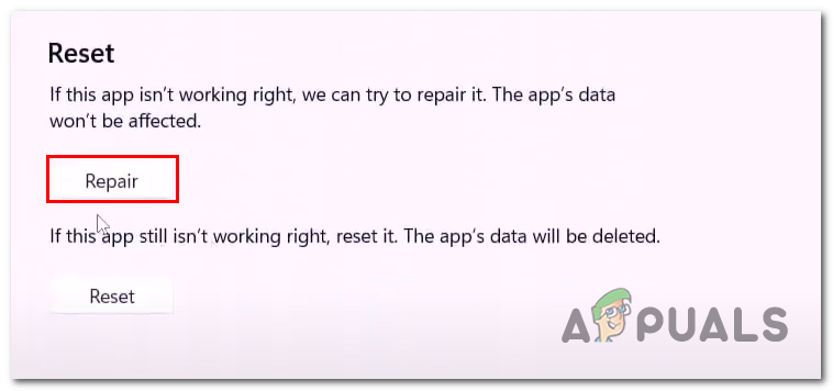 Repairing and resetting the Xbox application - Scroll down, Click on Repair and wait for it to finish processing