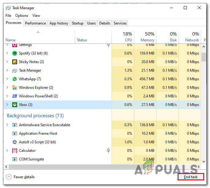 - Locate the Xbox application and select it and click on End Task.