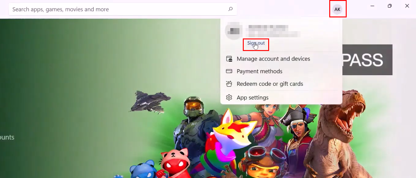 Logging out of the Microsoft store - Once done, Open the Xbox application and log in with the same account as Microsoft Store.