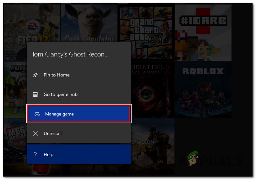 Accessing the My Games & App section - Next, from the Game & apps menu, navigate to the game that you’re trying to uninstall, press the start button and choose Manage game.