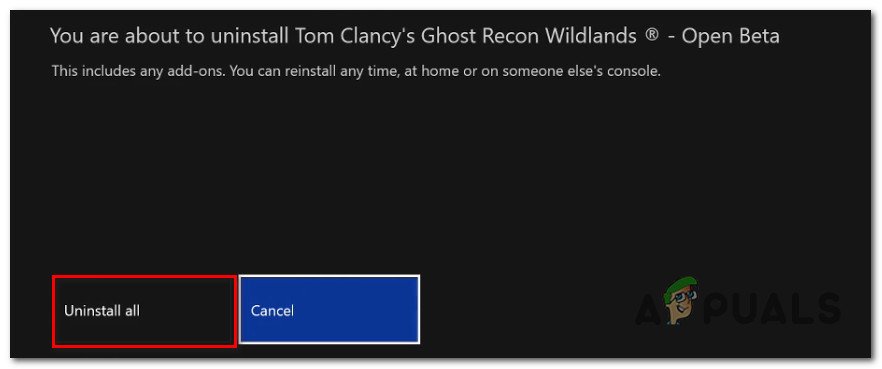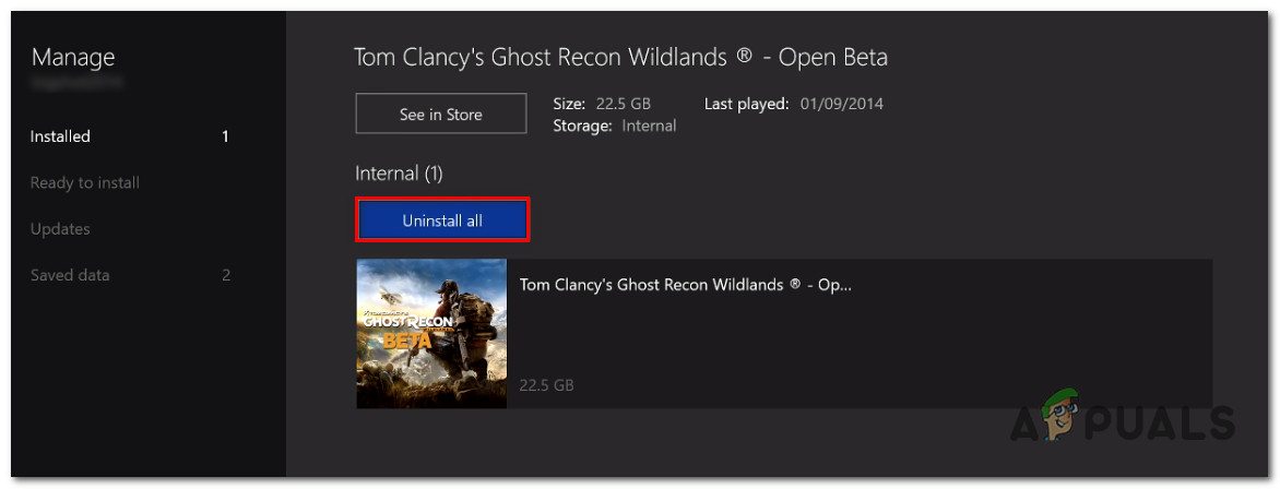 Uninstalling the game and associated add-ons - Once the operation is complete, return to the Manage menu on the left-hand side section and go to the Ready to install section. Next, go to the right pane and select Install all. This procedure will end up re-installing the base game plus any game addons that you are currently entitled to.