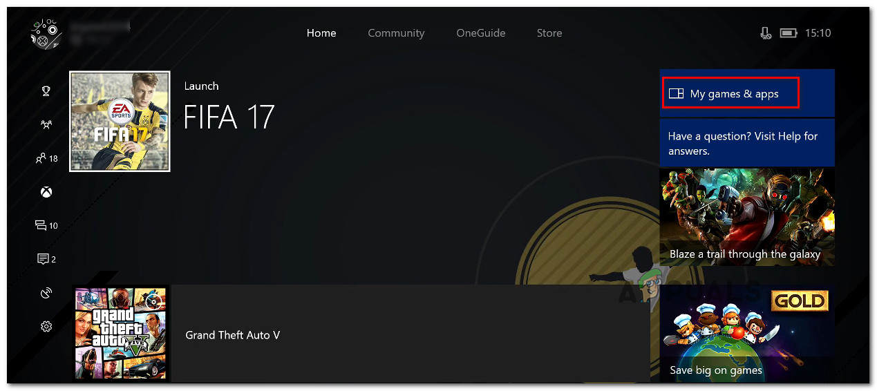 - Press the Xbox button on your controller to open up the guide menu, then navigate to the Games & apps menu.