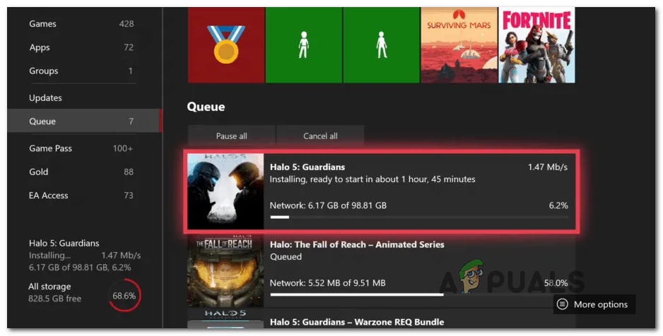 Before trying anything else, you should start this troubleshooting guide by ensuring that the game you are trying to start or update manually is not already updating in the background. You can check this by viewing the My games & Apps Queue.