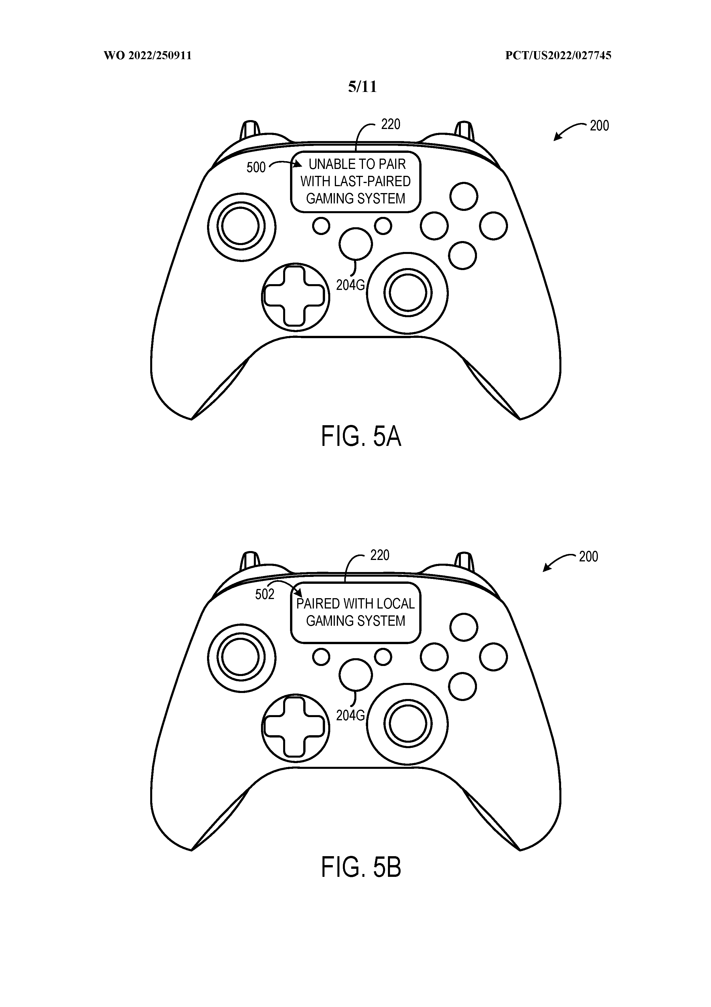 The game controller 200 includes a display 220 configured to visually present pairing and other status information that may aid a user in managing pairing of the game controller 200 with the different gaming systems. In some implementations, the display 220 may be omitted from the game controller 200. In some implementations, a display of a companion device that is paired with the game controller 200 may visually present pairing and other status information of the game controller 200.