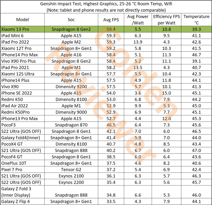 A previous test carried out by Golden Reviewer showed off the performance of the Snapdragon 8 Gen 2 in the Xiaomi 13 Pro, as it handily outperforms all rivals. In terms of raw performance, the Xiaomi 13 Pro averaged a frame rate of 59.4 FPS, making it the highest tested so far. Comparatively, the iPhone 14 Pro Max and its A16 Bionic manage 58.4 FPS, while the Dimensity 9200 on the Vivo X90 sits at 57.5 FPS.