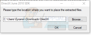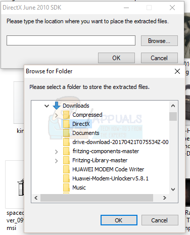 - Click on Browse and select the DirectX folder you created in the Downloads directory and then click OK.