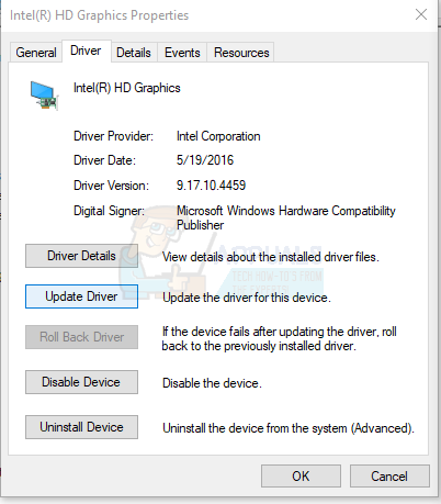 - Click on the Driver tab and select Update Driver.