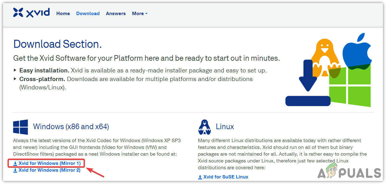 - Choose and download the appropriate Xvid Codec installer for your platform.
