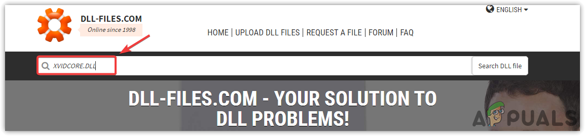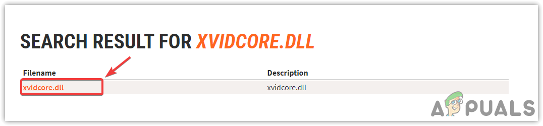- Type XVIDCORE.DLL into the search bar and press Enter.
