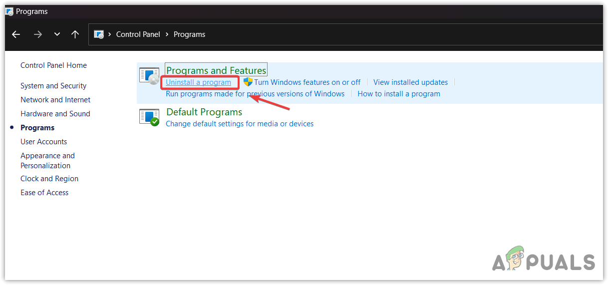 - Navigate to Programs > Uninstall a Program to reach the Control Panel Programs & Features.