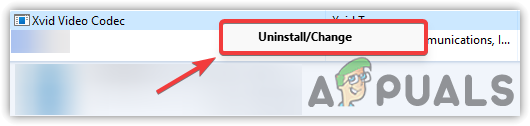 - Find the Xvid Codec, right-click on it, and select Uninstall.