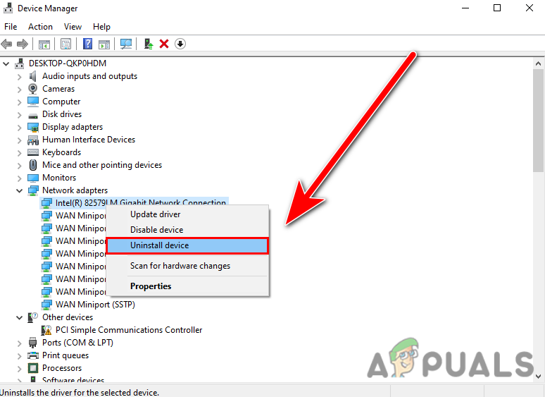 Click on Uninstall device to uninstall the network drivers - Once done, Restart your computer and it will automatically install the network driver for you.