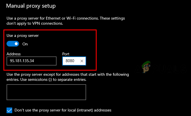 Inset the address and port in the following fields - You can check for the address and port on google.
