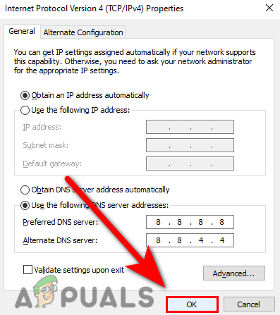 Press ok to save the DNS settings - Once finished, check if the error persists.